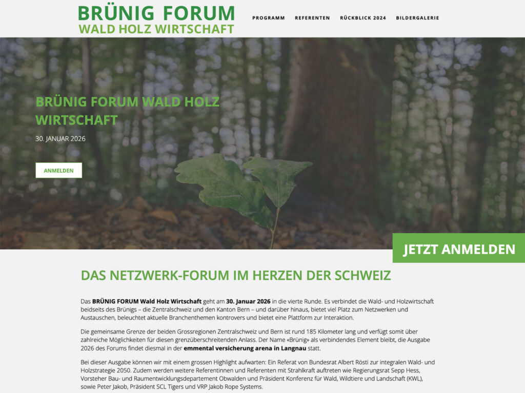 Das Brünig Forum am 30. Januar 2026 verbindet die Wald- und Holzwirtschaft der Zentralschweiz und des Kantons Bern – und darüber hinaus, bietet viel Platz zum Netzwerken und austauschen, beleuchtet aktuelle Branchenthemen kontrovers und bietet eine Plattform zur Interaktion. Der Themenschwerpunkt 2026 lautet: Wald und Holz im Wandel – Die Kraft der Kooperation.