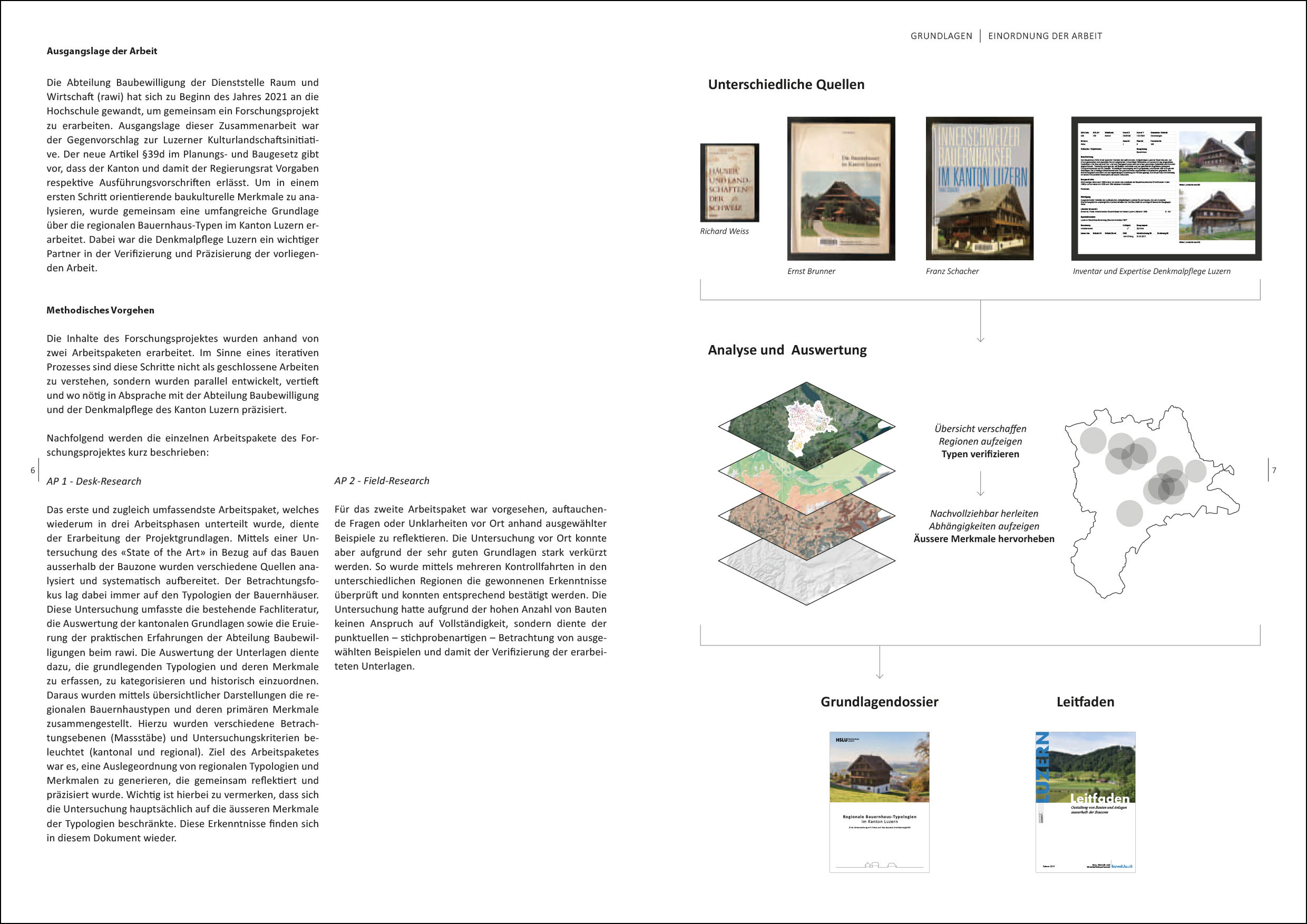 Ziel der beiden Forschungsprojekte «Baukultur ausserhalb der Bauzone» und «Gestaltungsvorgaben Bauen ausserhalb der Bauzone im Kanton Luzern» war es, ein Instrumentarium zu entwickeln, welches die regionaltypischen Merkmale für Wohnbauten ausserhalb der Bauzone im Kanton Luzern umfasst und mit entsprechenden Planungsparametern versehen ist. Die daraus entwickelten Gestaltungsvorgaben sollen Planende und Behörden bei zukünftigen Bauvorhaben unterstützen und die landschaftliche und baukulturelle Eingliederung neuer Bauten verbessern.