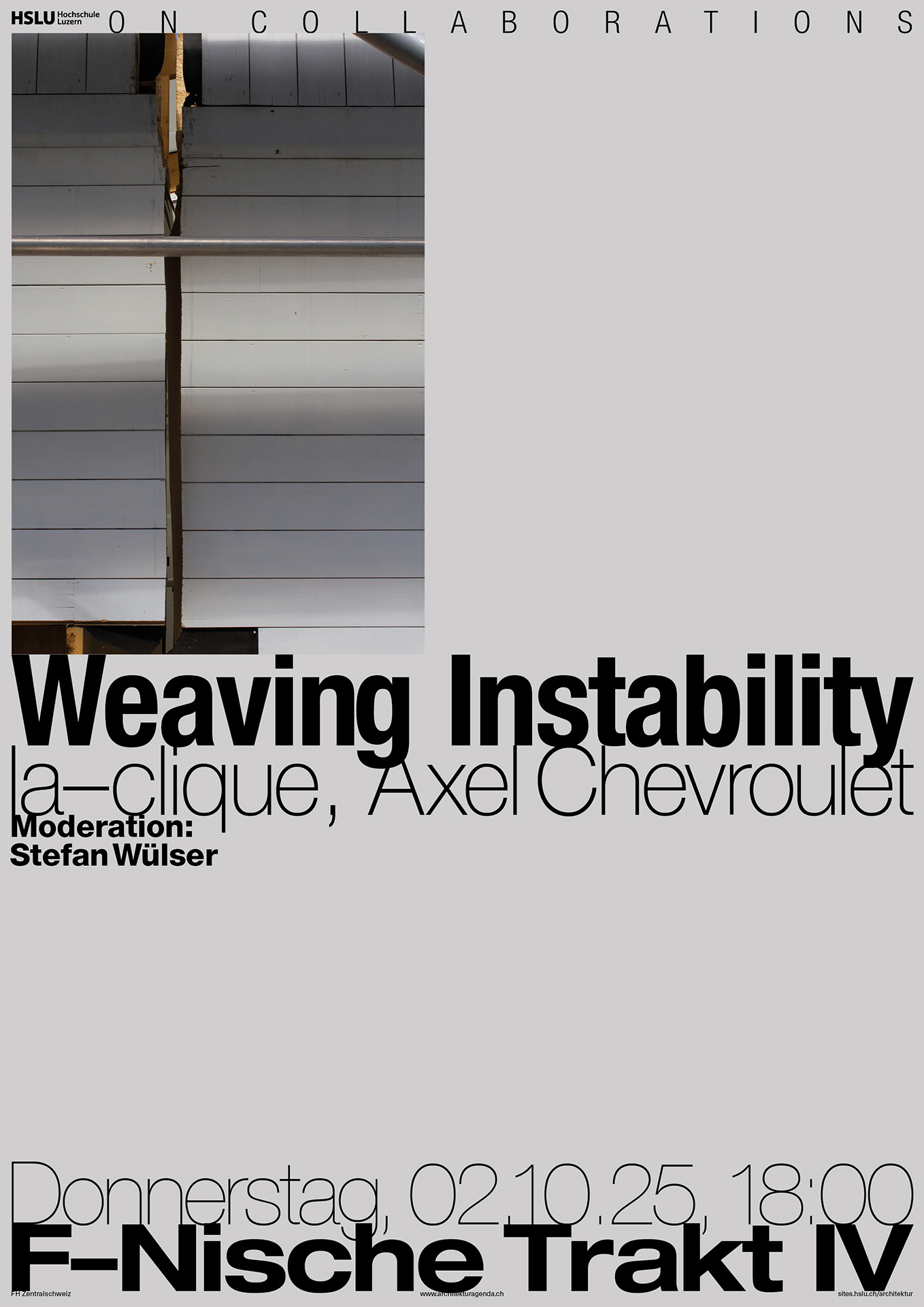 Institutsvortrag „On Collaborations“ I Weaving Instability I la–clique: Axel Chevroulet I moderiert von Stefan Wülser