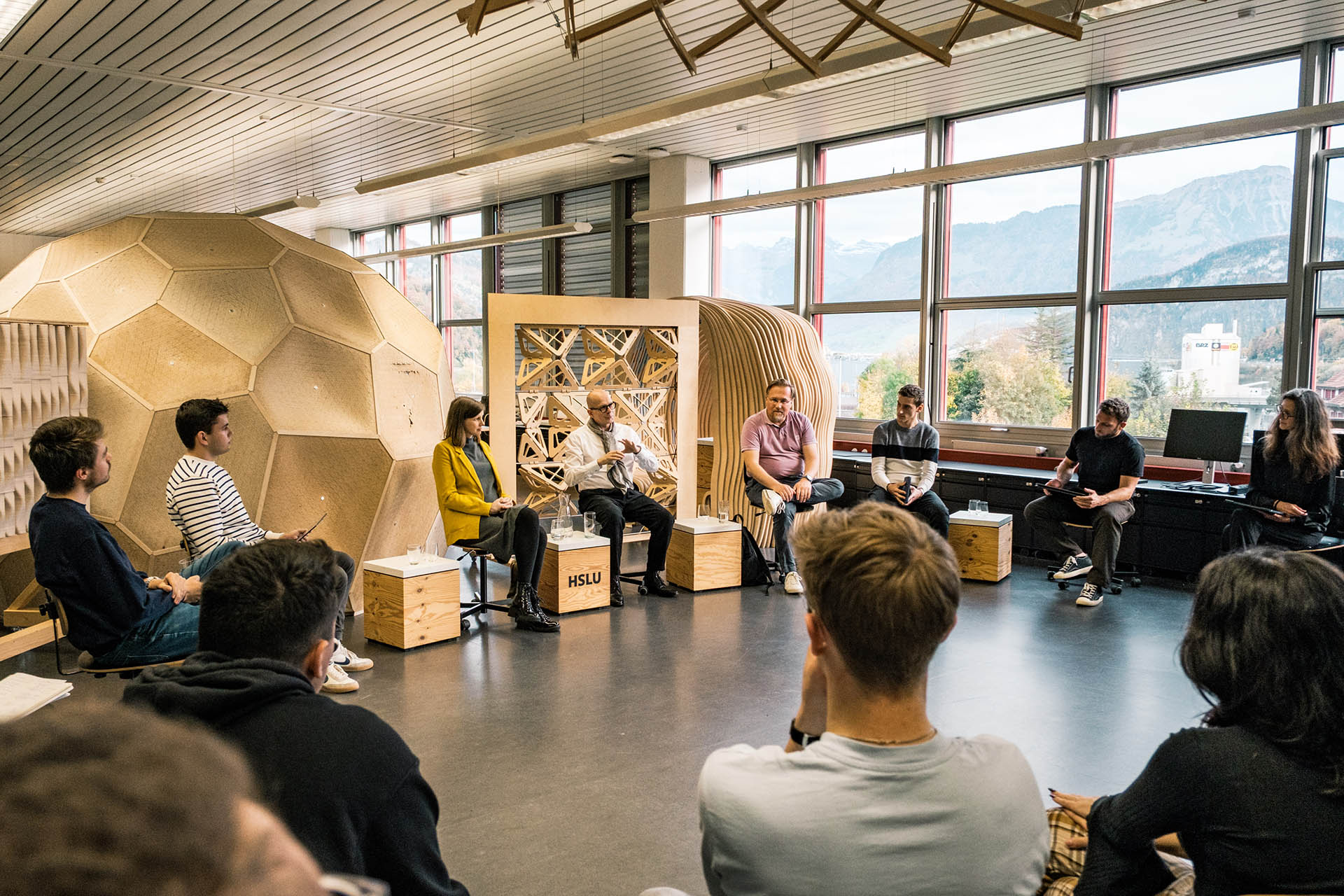 Der Begriff der Agora – als öffentlicher Versammlungs- und Marktplatz der griechischen Antike – diente dabei als Leitmotiv: Können digitale Technologien neue Orte des Austauschs und der Beteiligung schaffen? Diese Leitfrage wurde praxisnah vertieft, indem die Studierenden für ein Areal am Seetalplatz in Emmen ein Konferenzformat für eine Zukunftskonferenz entwickelten. Ziel war es, räumliche, soziale und funktionale Bedingungen so zu gestalten, dass der Seetalplatz als «neue Agora» erfahrbar wird – und sichtbar macht, wie KI-gestützte Anwendungen den Dialog zwischen Planenden, Ausführenden, Zuliefernden und Nutzenden im Bauwesen unterstützen oder verändern können.