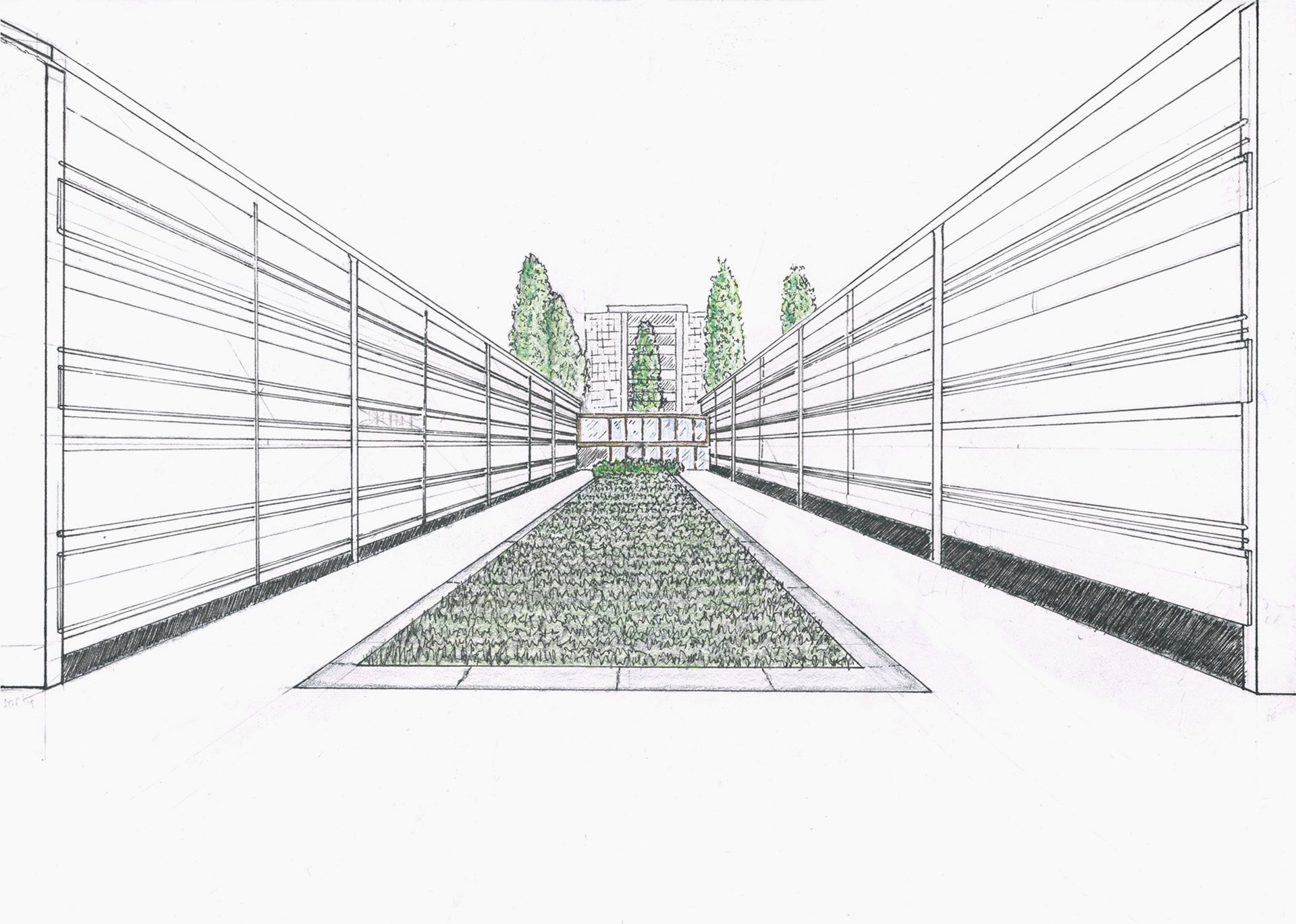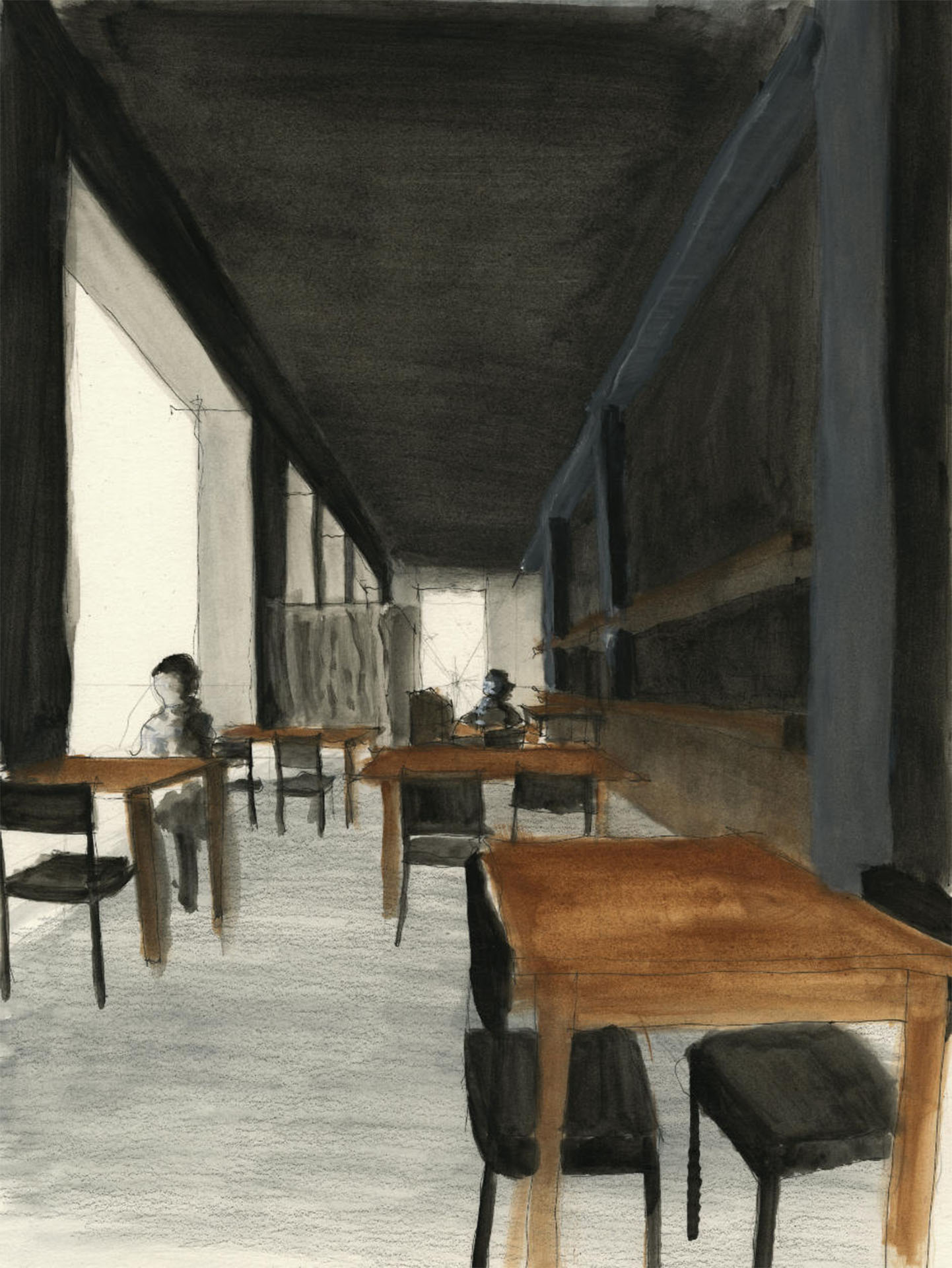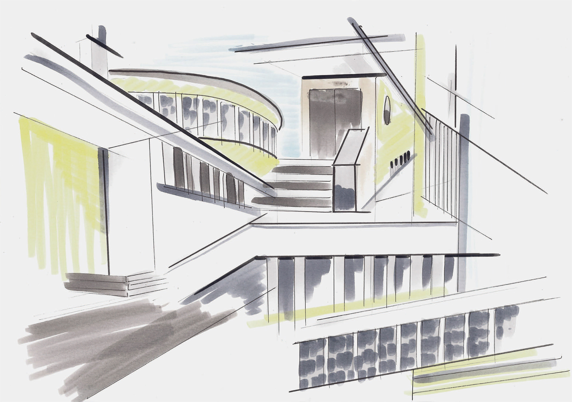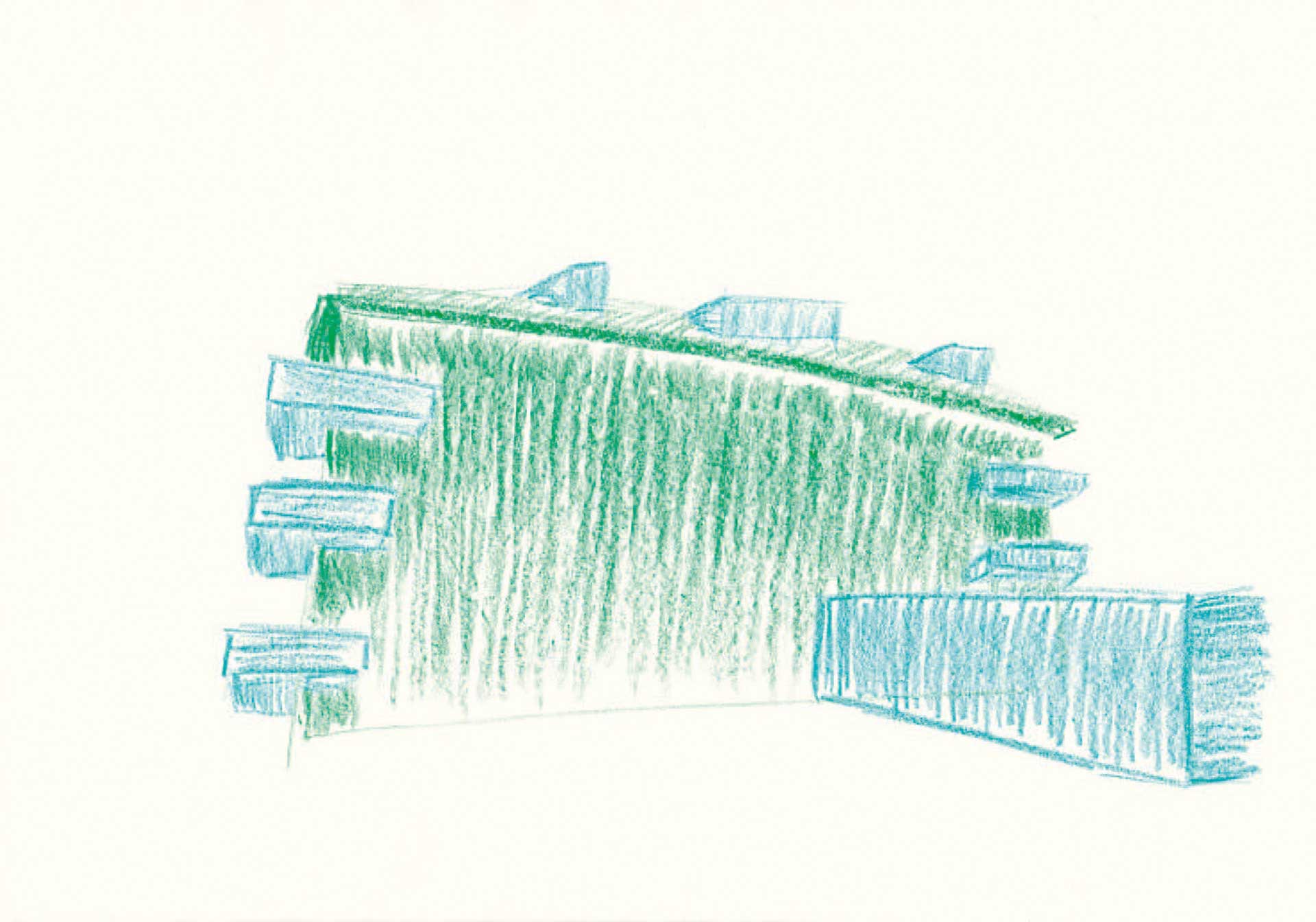 Die Identität der ausgewählten Bauwerke wird durch Handzeichnungen erfasst und reflektiert. Auf die entwurfsrelevanten Inhalte der Bauwerke abgestimmt, wählen die Studierenden die zeichnerischen Techniken spezifisch aus.