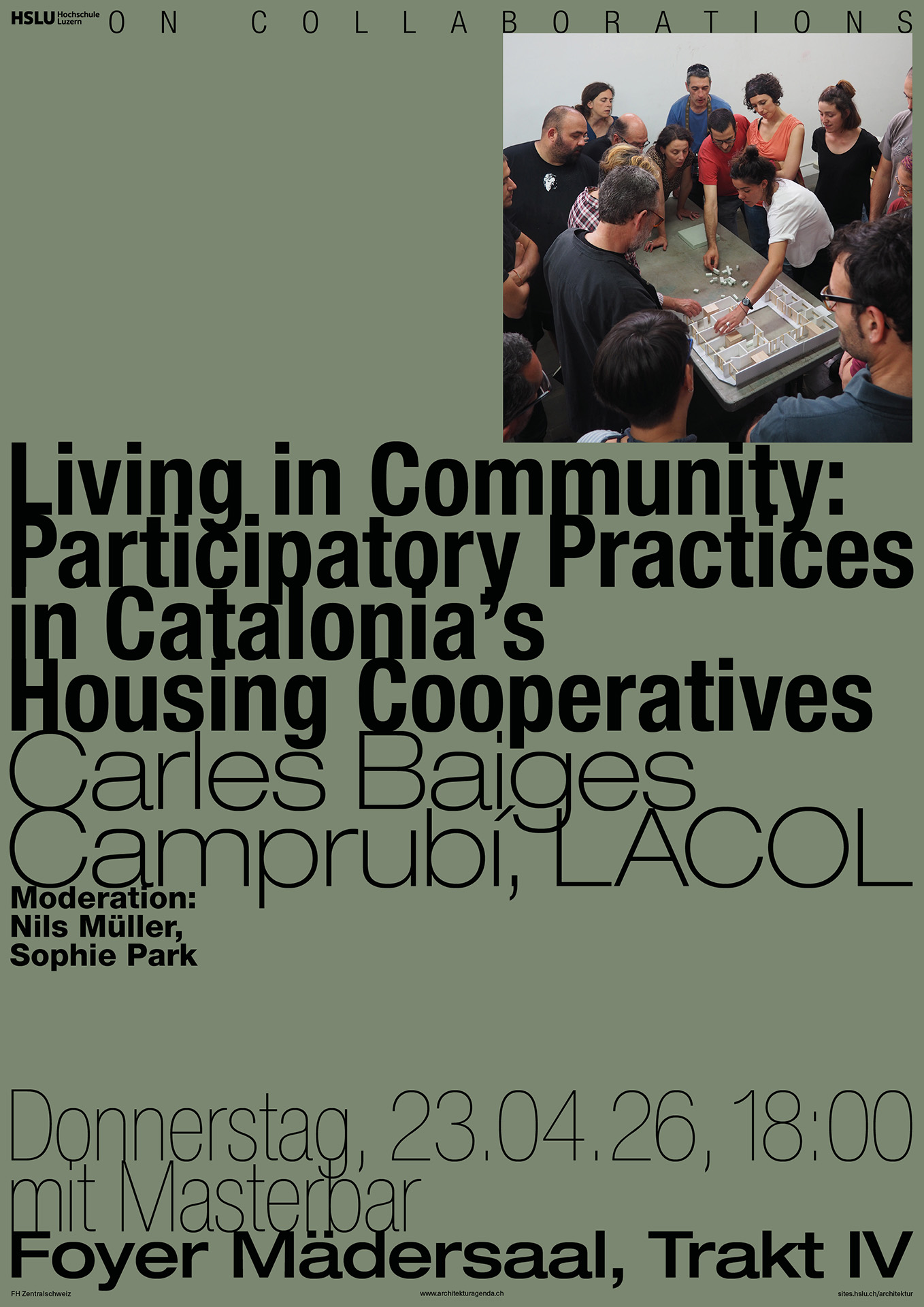 Institutsvortrag I On Collaborations I Living in Community: Participatory Practices in Catalonia’s Housing Cooperatives I Carles Baiges Camprubí, LACOL, Barcelona Donnerstag, 23. April 2026, 18:00 - 19:30 Kategorien:BachelorMasterMitarbeitendeStudierendeVortrag Weiterlesen