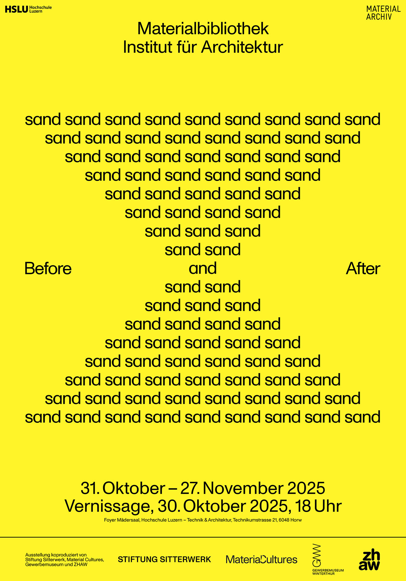 Vernissage Ausstellung «Before and After Sand» Donnerstag, 30. Oktober 2025, 18:00 - 19:00 Kategorien:BachelorMasterMitarbeitendeStudierendeVernissageVortrag Weiterlesen