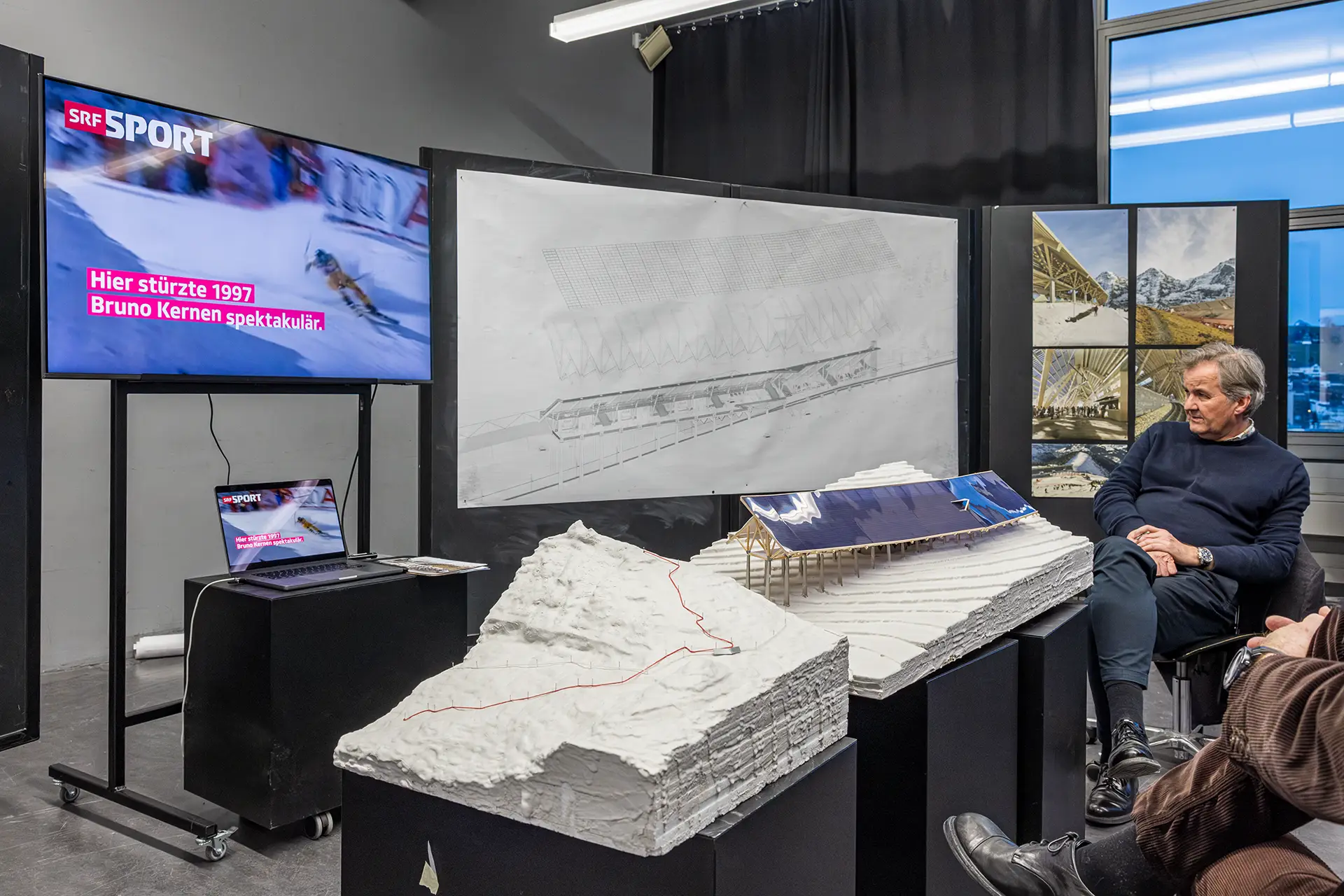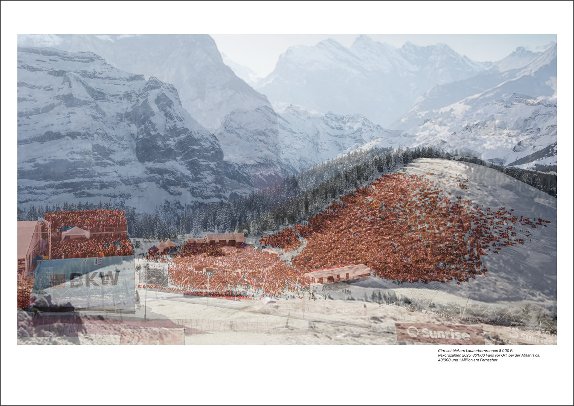 Es entsteht eine dauerhafte Infrastruktur, die Transportprozesse reduziert, den Anlass räumlich fasst und gleichzeitig Raum für Skibetrieb und Alpwirtschaft bietet. Eine Architektur, die Ereignis, Infrastruktur und Kulturlandschaft verbindet. Das Lauberhornrennen ist somit nicht mehr nur ein temporärer Ausnahmezustand, sondern ganzjährig räumlich erlebbar – eingebettet in die alpine Topografie und die Tradition der Wengernalp.