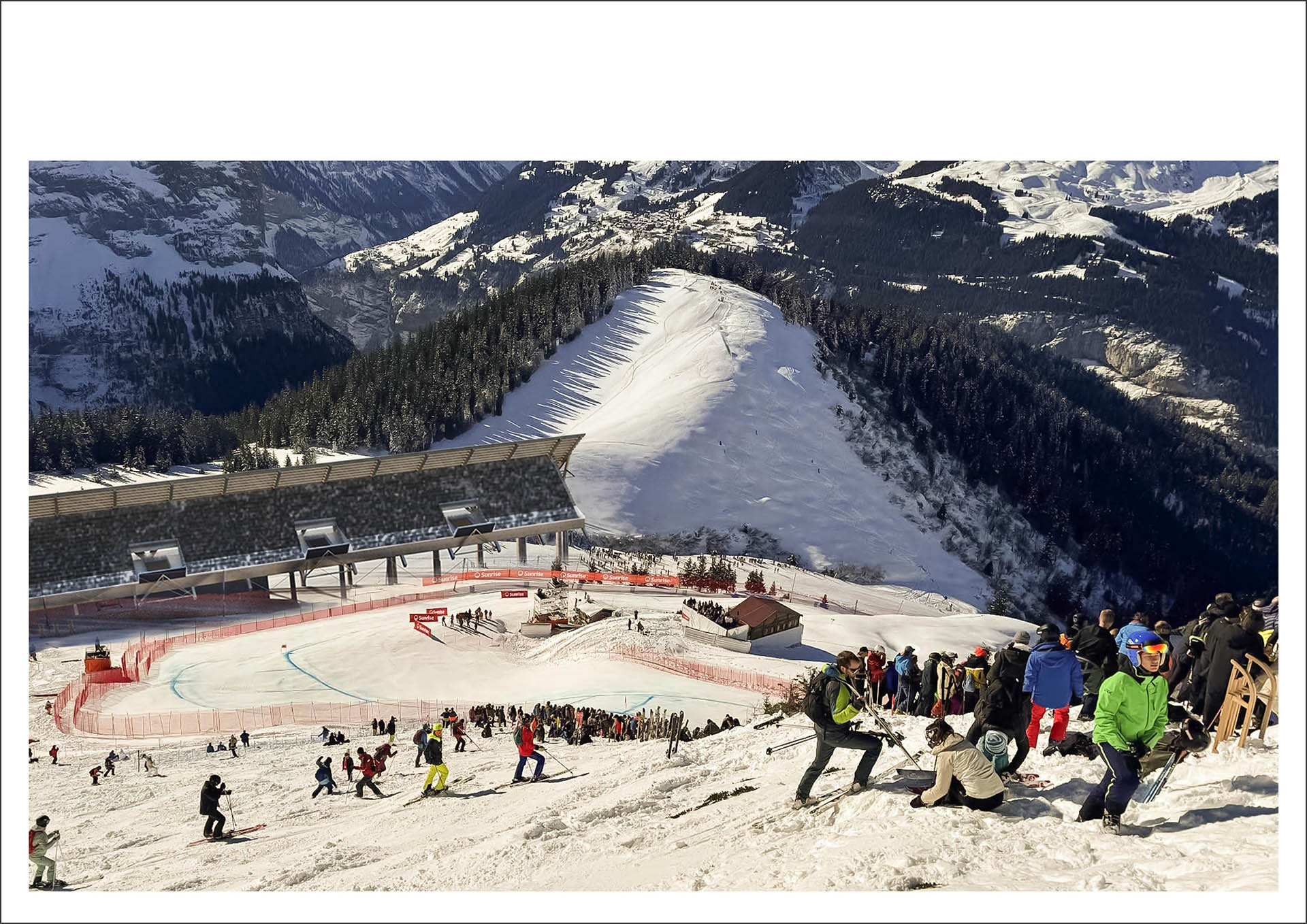 Das Lauberhornrennen erfordert einen enormen logistischen Aufwand. Temporäre Bauten werden bereits Monate vor dem Anlass errichtet und prägen über einen langen Zeitraum die Landschaft. Gleichzeitig stösst die Besucherzahl zunehmend an ihre Grenzen.