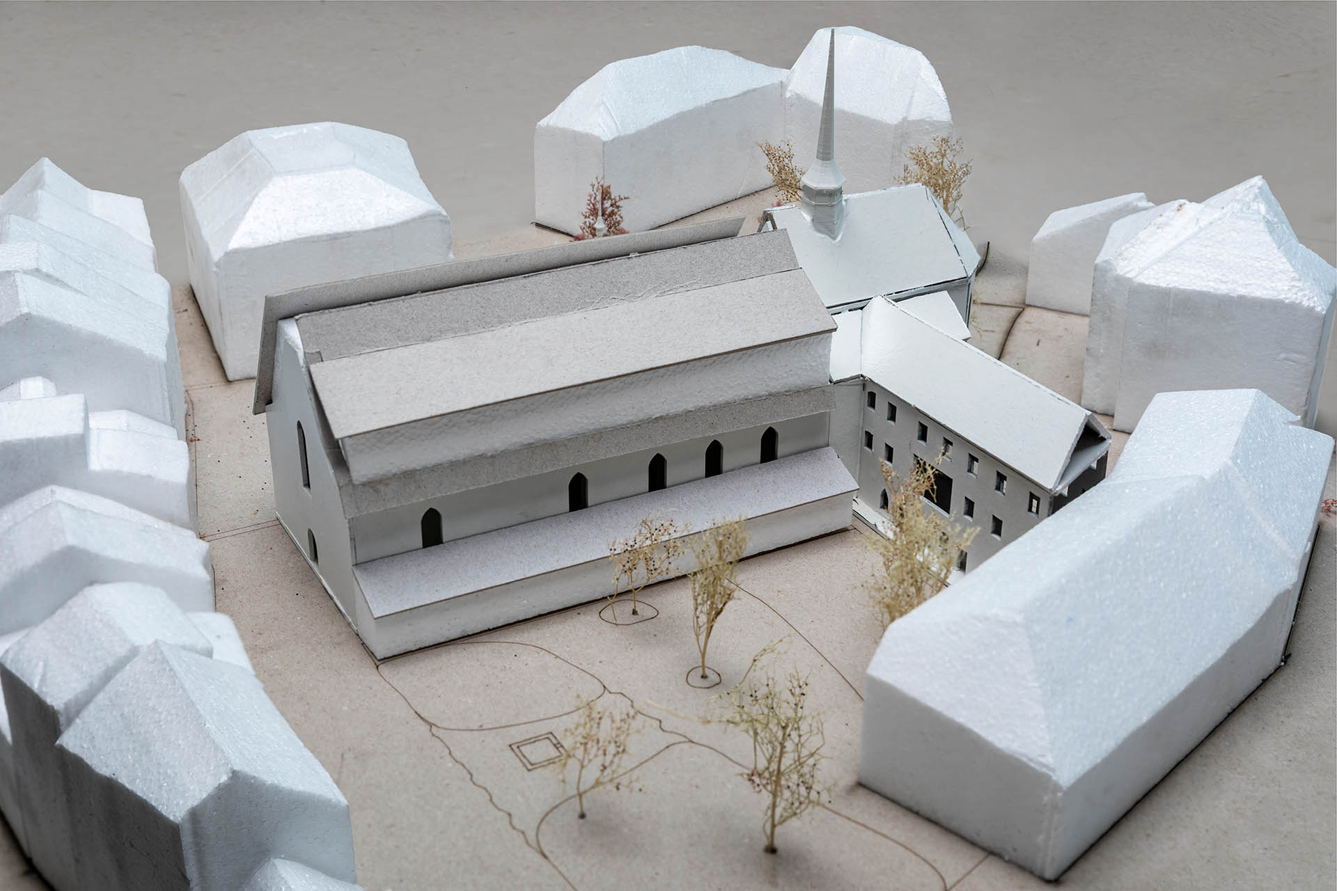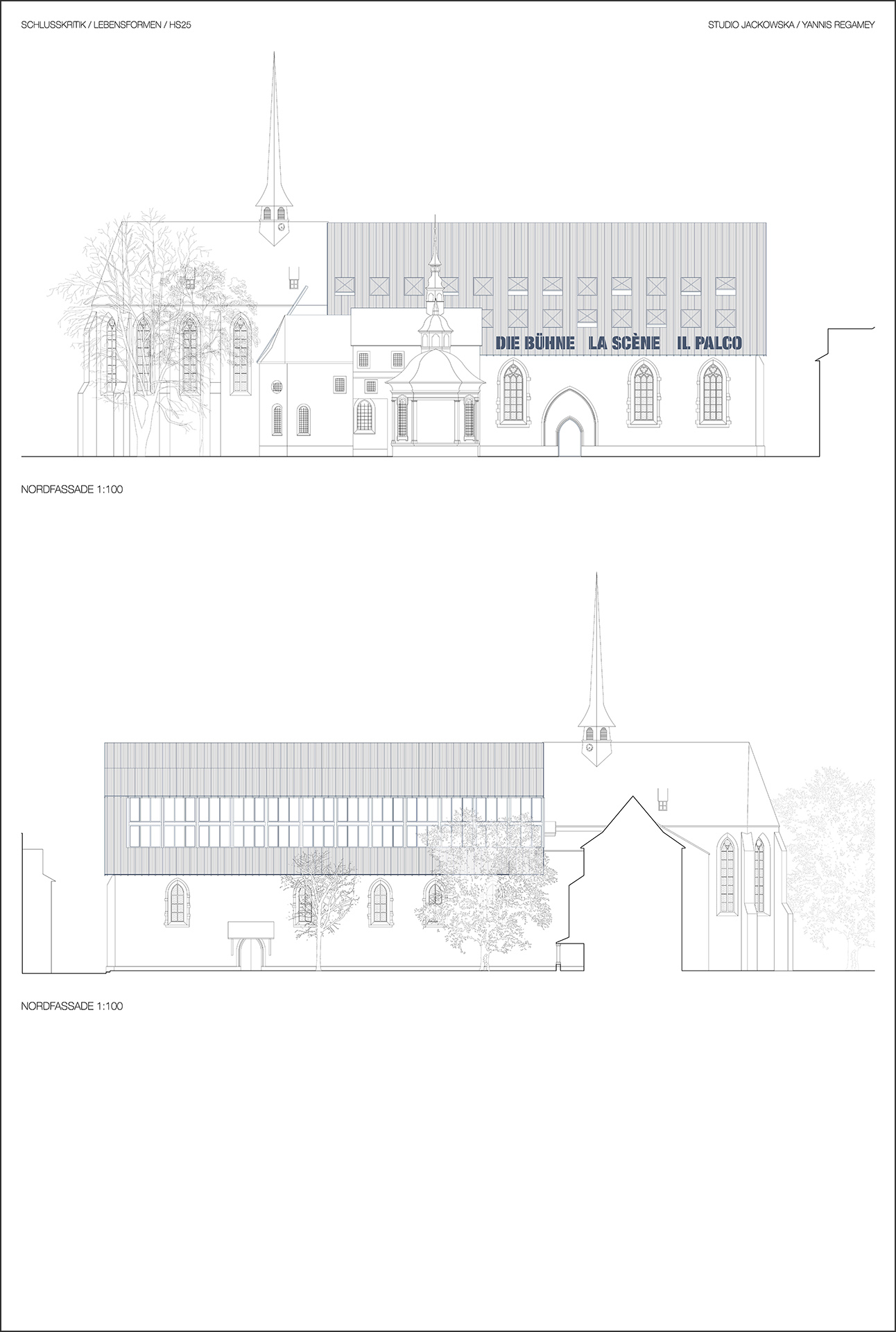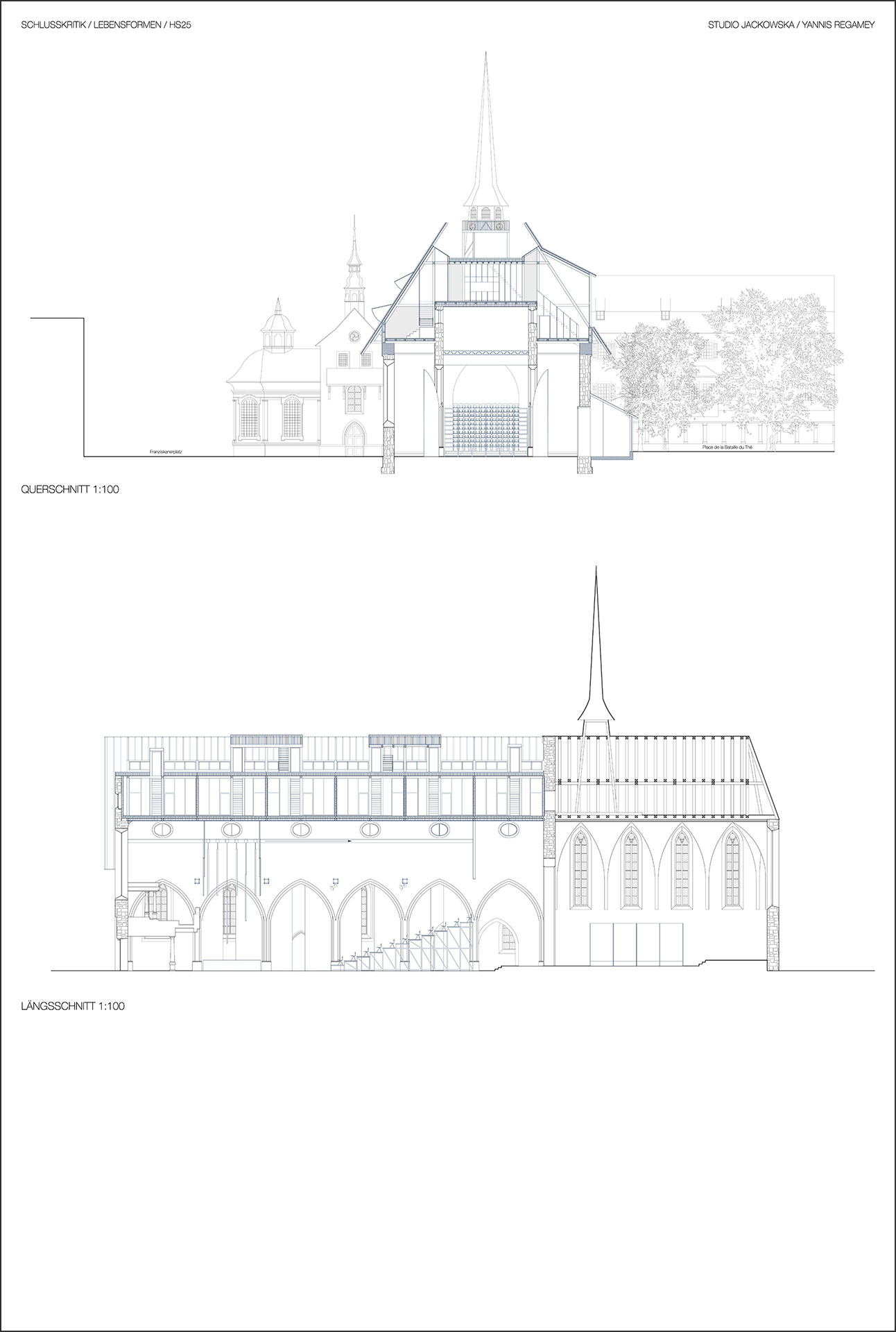 Im Herbstsemester 2025 widmeten sich die Studierenden des Bachelor Intermediate im Projektmodul exemplarisch vier Kirchenbauten in der Stadt Luzern. Ausgehend von einer umfassenden Analyse entwickelten sie Fragestellungen, die sich aus dem spezifischen Kontext ergeben und untersuchten die Transformationspotenziale dieser Gebäude im Hinblick auf eine Umnutzung zu Wohnraum. Dabei analysierten sie konstruktive Voraussetzungen, erforschten bestehende Raumqualitäten und entwickelten Entwurfsstrategien für die Umnutzung. Yannis Regamey beschäftigte sich mit der Kirche St. Maria am Franziskanerplatz.