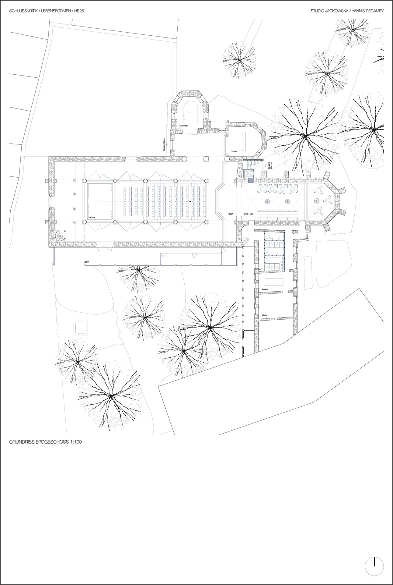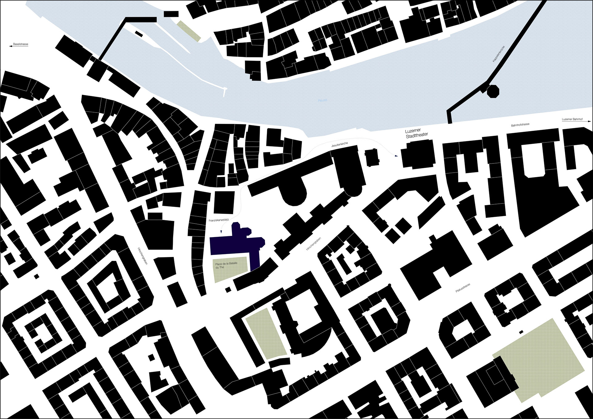 Zu seinem Projekt schreibt er: «Der Entwurf reagiert auf das gescheiterte Projekt eines neuen Luzerner Stadttheaters sowie auf den Bedeutungsverlust sakraler Räume im urbanen Kontext. Die St. Maria Kirche wird zu einem hybriden Ort aus Theater, Öffentlichkeit und Wohnen transformiert. Die grosszügigen Raumhöhen der Basilika werden dabei nicht horizontal geteilt, sondern als zusammenhängende räumliche Qualität erhalten und für ein alternatives, frei bespielbares Theater genutzt. Der Sakralraum wird als offener Kulturraum neu interpretiert. Eine flexibel nutzbare Bühne ermöglicht unterschiedliche Formate von Theater bis Performance. Der Chor wird als öffentliche Bar aktiviert und bildet zusammen mit dem Theater eine durchgehende öffentliche Nutzung, die den Franziskanerplatz räumlich in das Gebäude hineinzieht und als niederschwelliger Treffpunkt neu belebt.