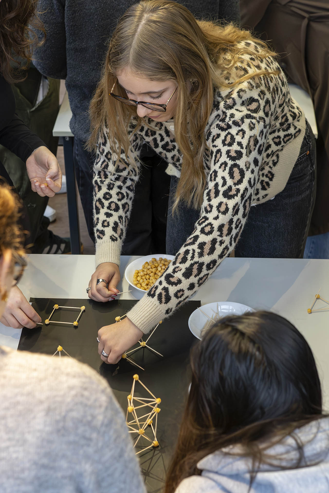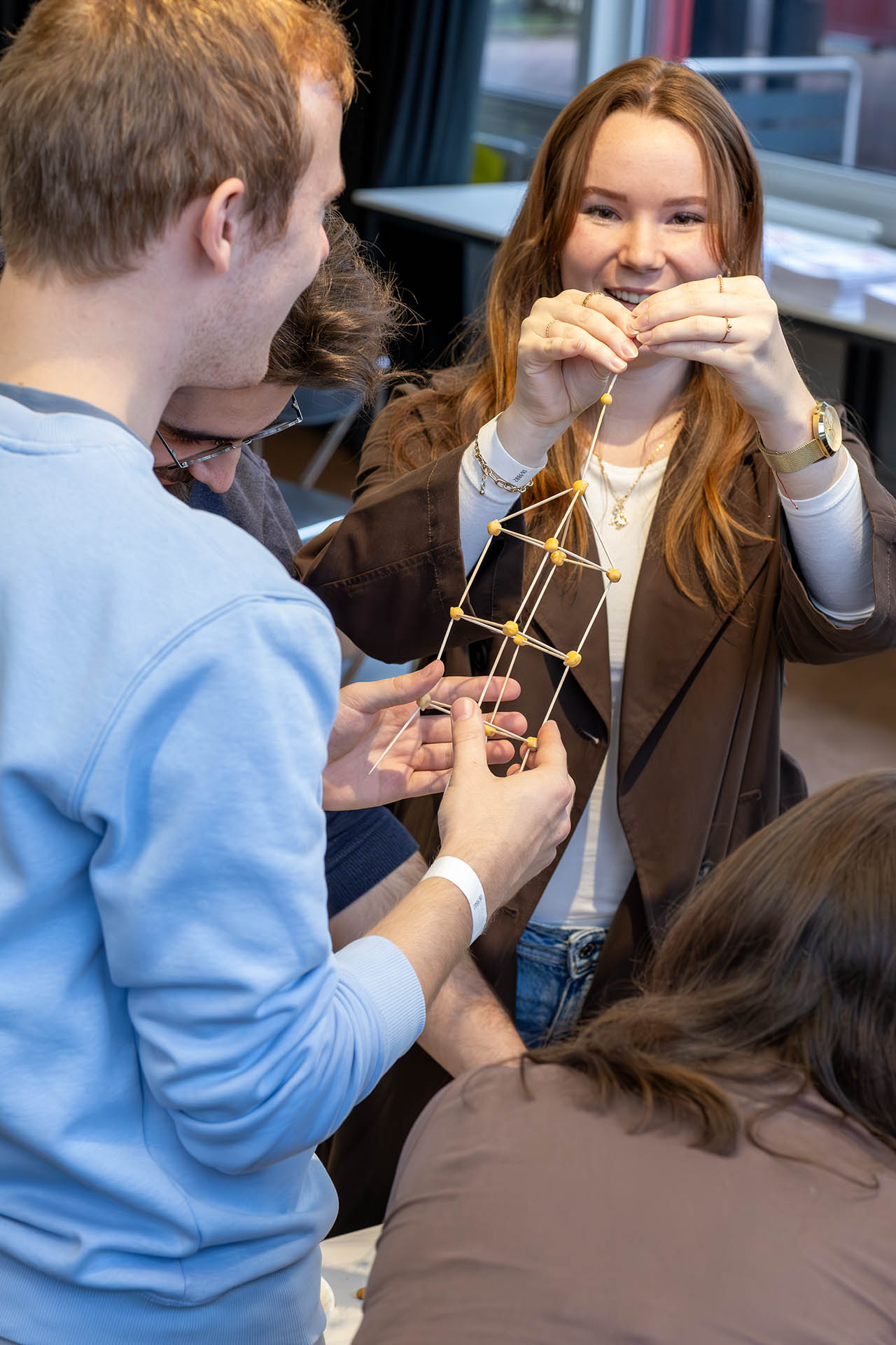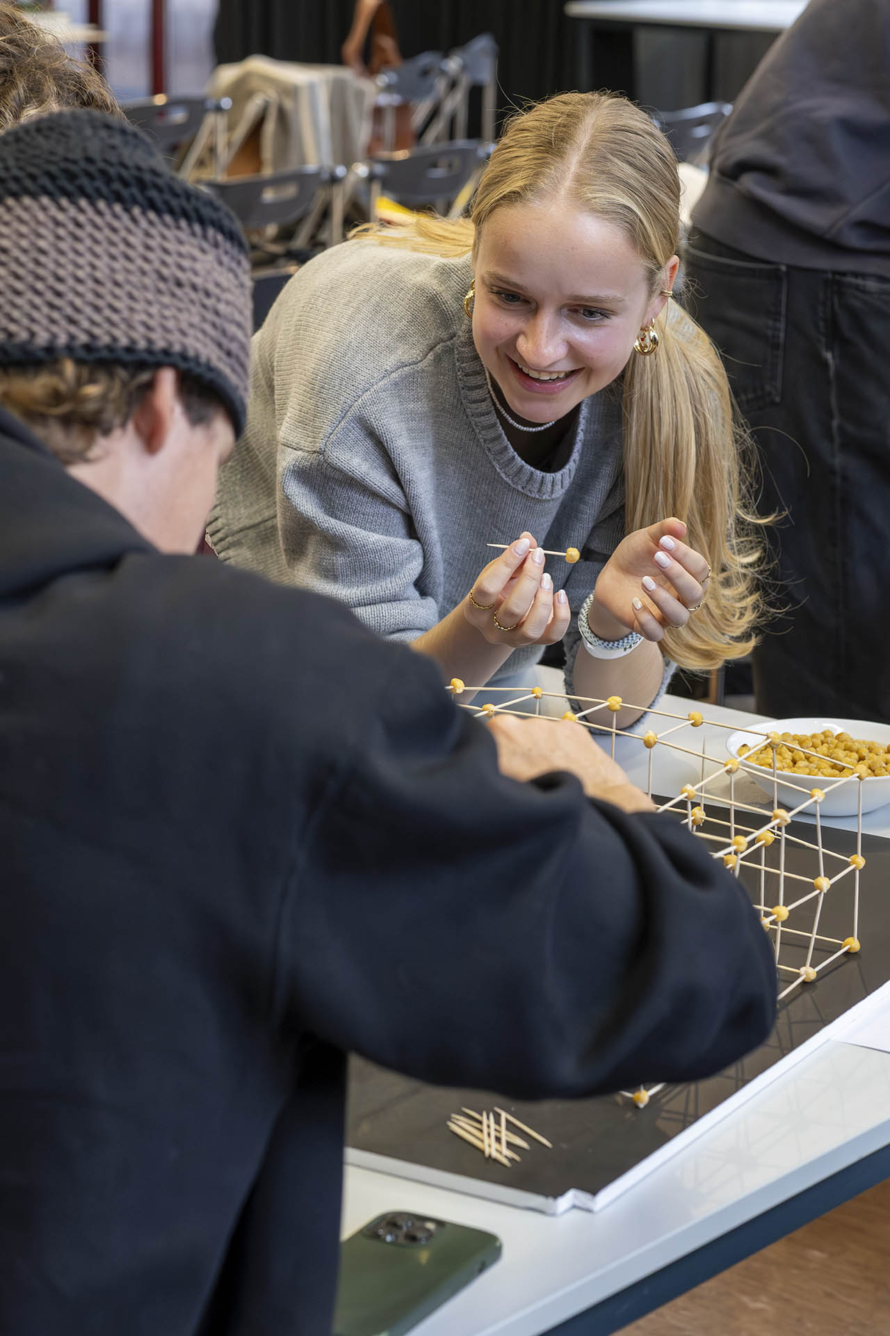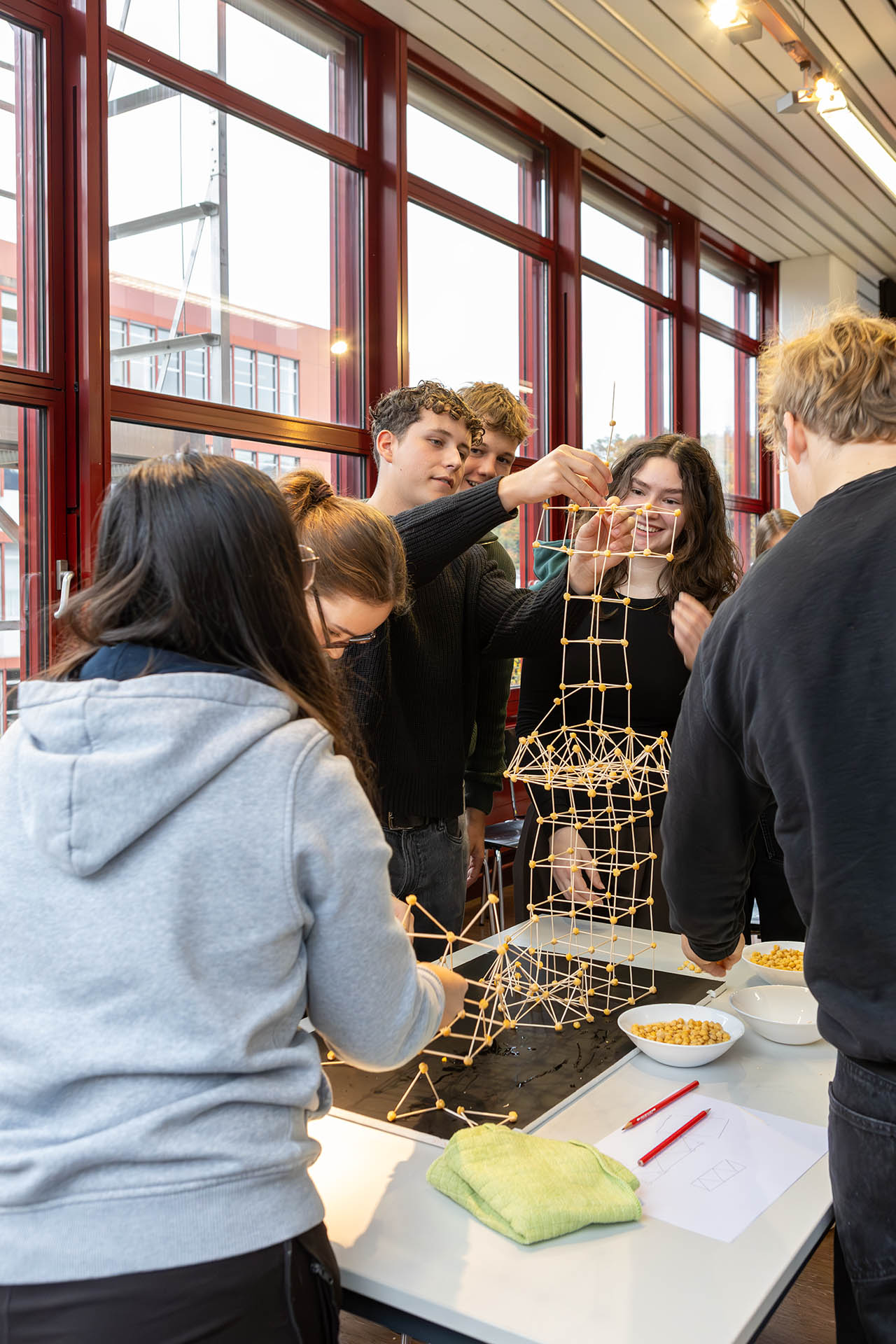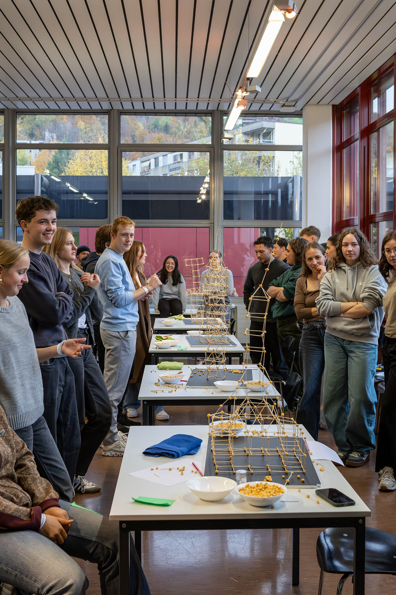 Die rund 100 Interessentinnen und Interessenten des Bachelor Architektur durften auch gleich selber Hand anlegen und ihre Fertigkeit beim Bauen austesten – so hoch wie möglich, präzise und schön!
