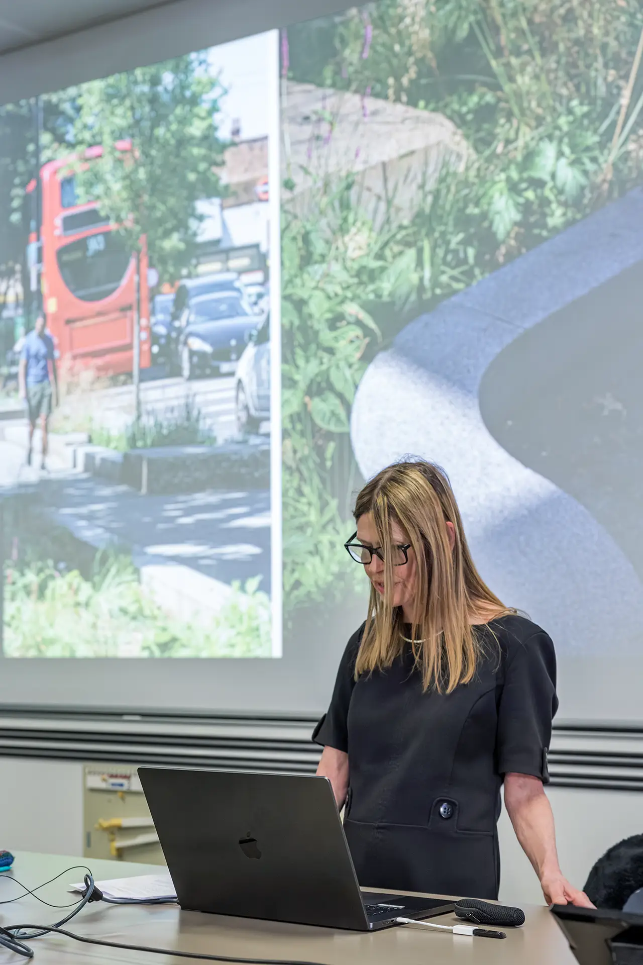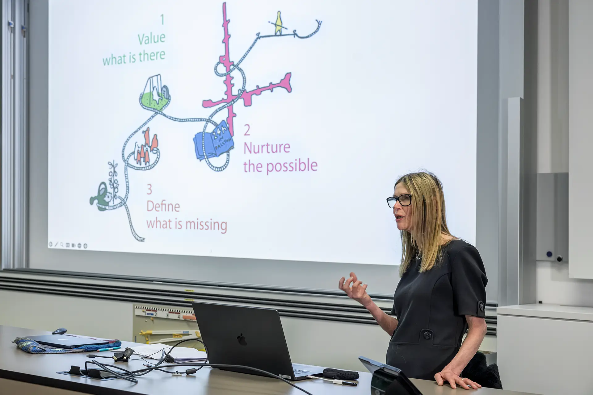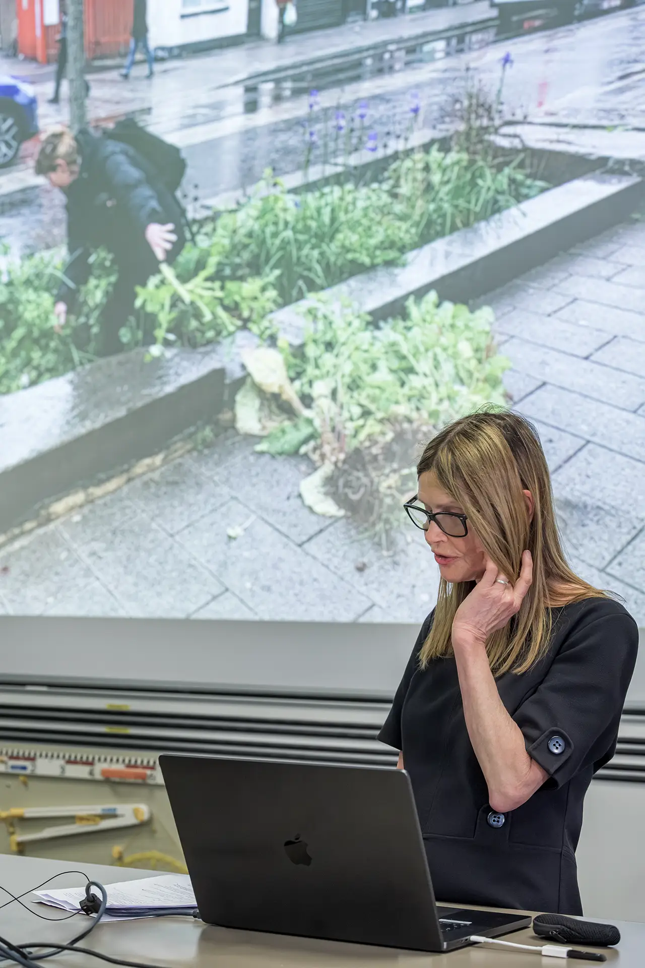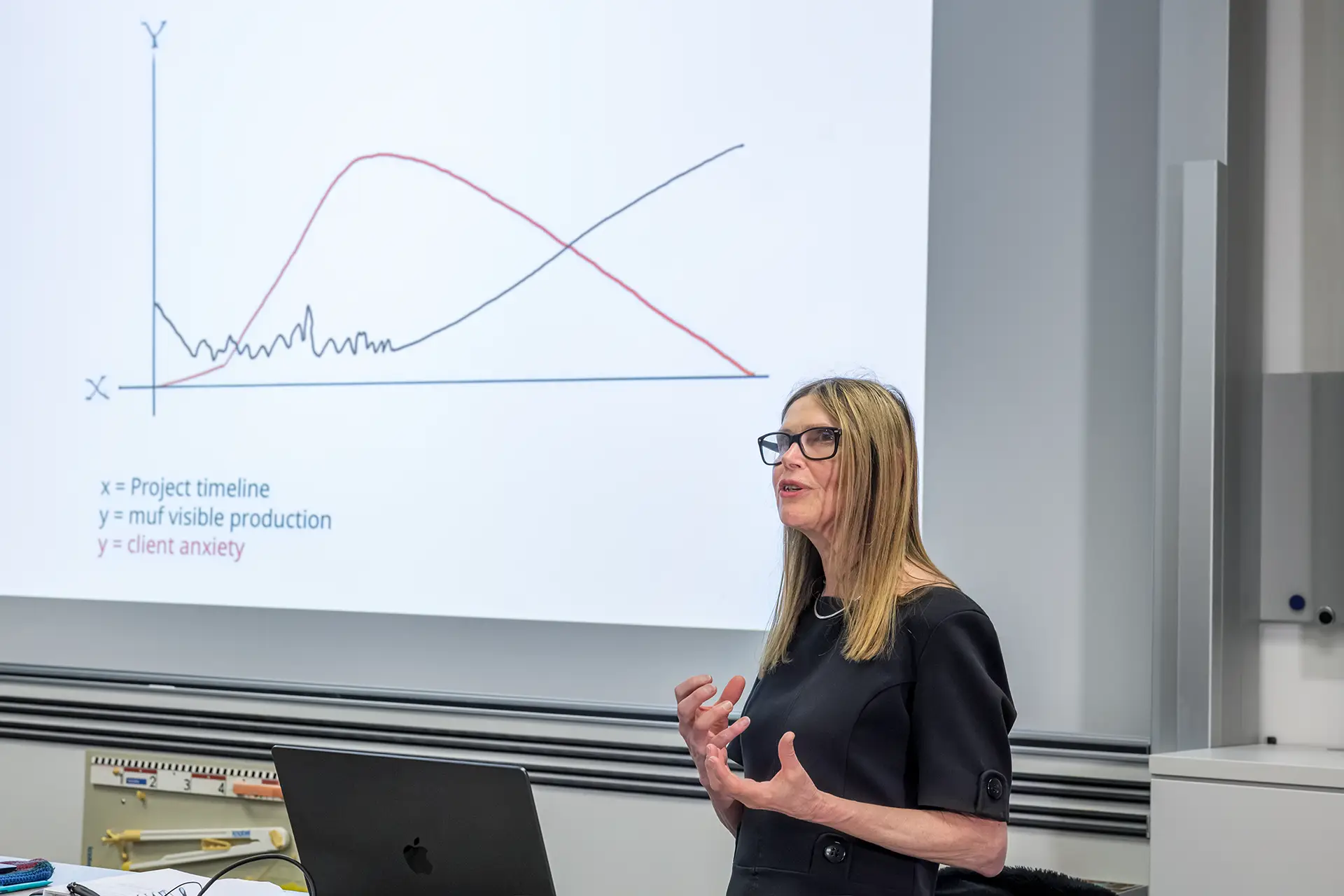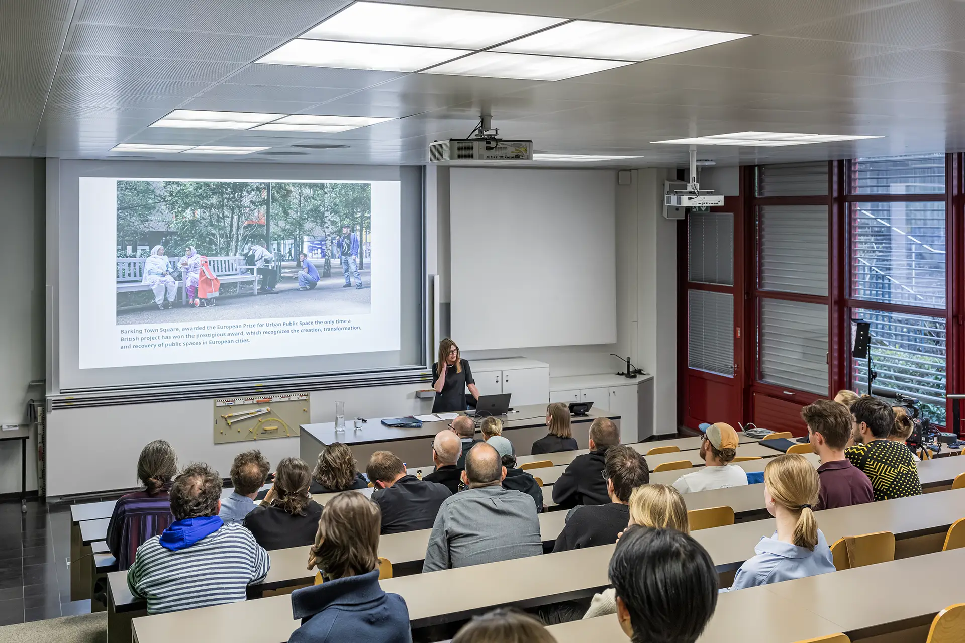 Katherine Clarke des Londoner Büros für Kunst und Architektur «muf» hielt den zweiten Vortrag der Serie «On collaborations» im Frühlingssemester 2026. muf ist ein international anerkanntes, preisgekröntes Büro, dessen Arbeiten im öffentlichen Raum gleichermaßen pragmatisch wie unermüdlich ambitioniert sind.