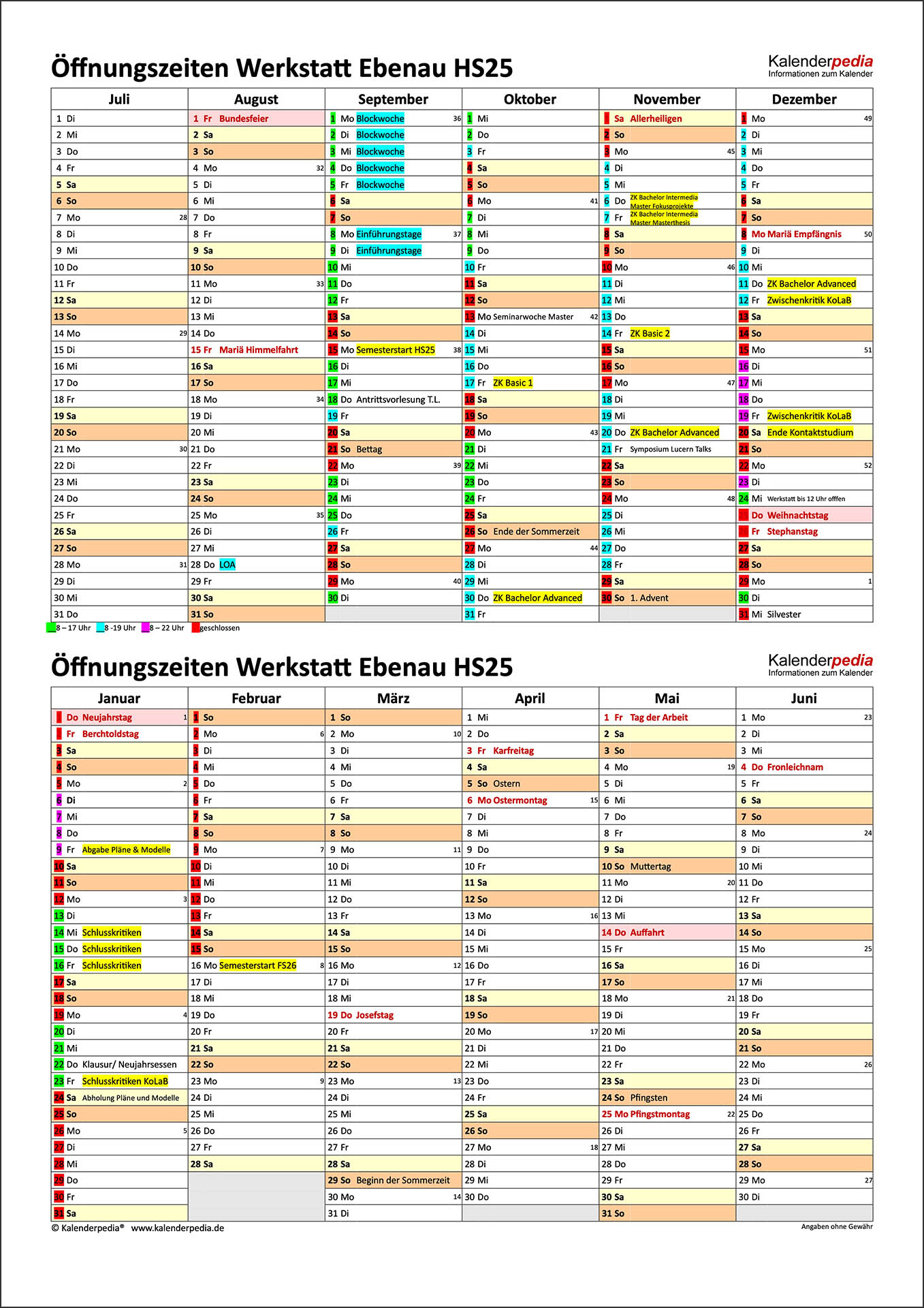 Dienstag bis Freitag 8.00–17.00 Uhr
