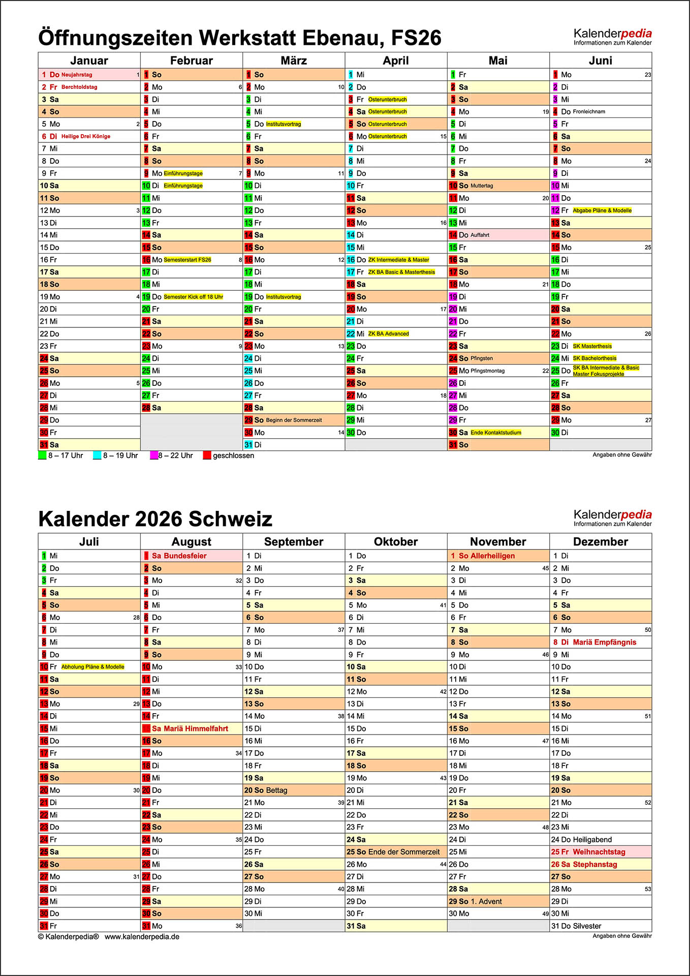 Dienstag bis Freitag 8.00–17.00 Uhr