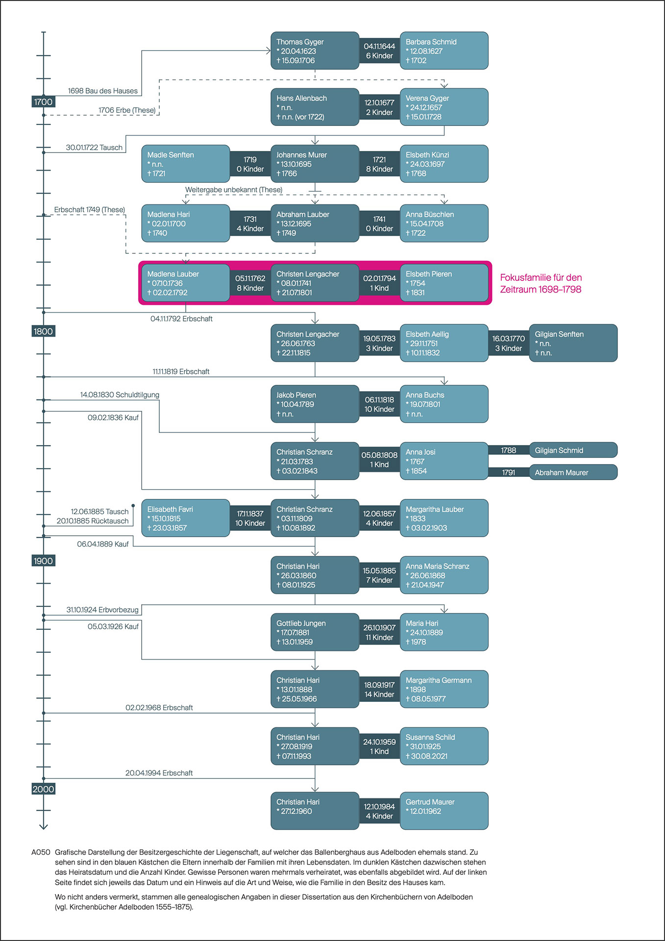 Die Dissertation stand im Kontext des Forschungsprojektes «Mensch & Haus – Wohnen, Bauen und Wirtschaften in der ländlichen Schweiz». Das vom Schweizerischen Nationalfonds (SNF) finanzierte Projekt mit einer Laufzeit von 2020 bis 2024 war eine Kooperation zwischen der Universität Basel, der Berner Fachhochschule, dem Freilichtmuseum Ballenberg und weiteren Partnerorganisationen aus unterschiedlichen Fachgebieten. Das Projekt fragte mit einem interdisziplinär ausgerichteten Ansatz nach den Wechselwirkungen von Mensch, materieller Kultur, Natur und Lebensweise und verknüpft bauhistorische, sozial- und wirtschaftsgeschichtliche, kulturanthropologische und biographische Ansätze. Im Fokus der Untersuchung standen die Geschichten ausgewählter Häuser des Freilichtmuseums Ballenberg und der Menschen, die in ihnen lebten. Die Forschung befasste sich sowohl mit den wirtschaftlichen, sozialen und kulturellen Wechselwirkungen zwischen den Gebäuden und ihren Bewohnenden, als auch mit den Einflüssen übergeordneter historischer Transformationsprozesse. Haus und Mensch sind dabei Zeitzeugen einer ländlichen Schweiz, deren Geschichtsschreibung von teils stereotypen Vorstellungen durchzogen ist, die gerade in der Bauernhausforschung der letzten Jahrzehnte schrittweise differenzierter und entromantisiert betrachtet wurden. Hierzu leistet auch das SNF-Projekt einen entsprechenden Beitrag. Abhängig vom Haus und seinem Kontext bis zur Translozierung auf den Ballenberg nahmen die Forschenden bestimmte Zeiträume und Themen in den Blick.