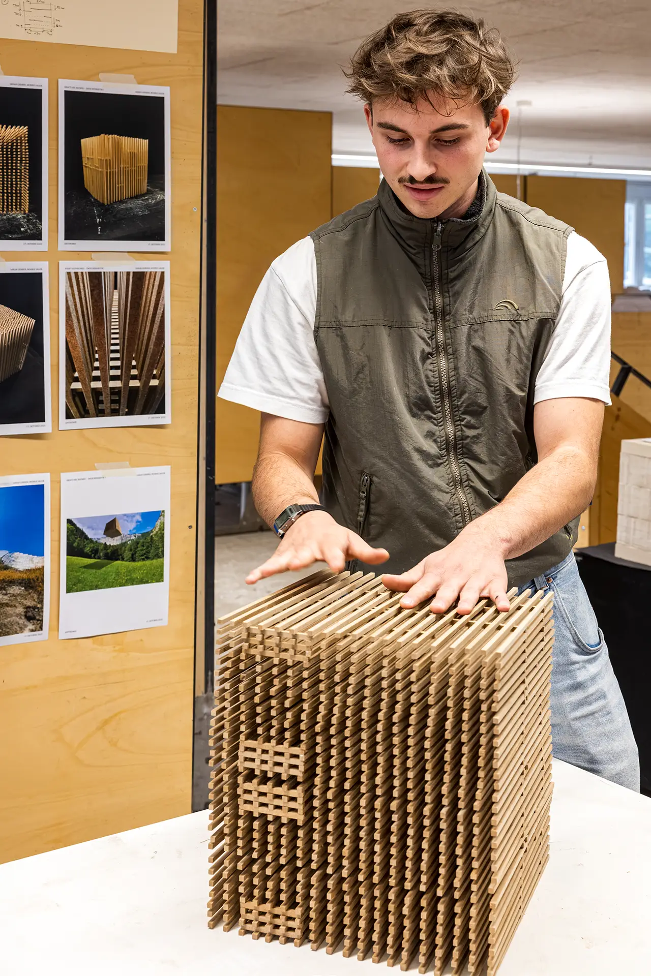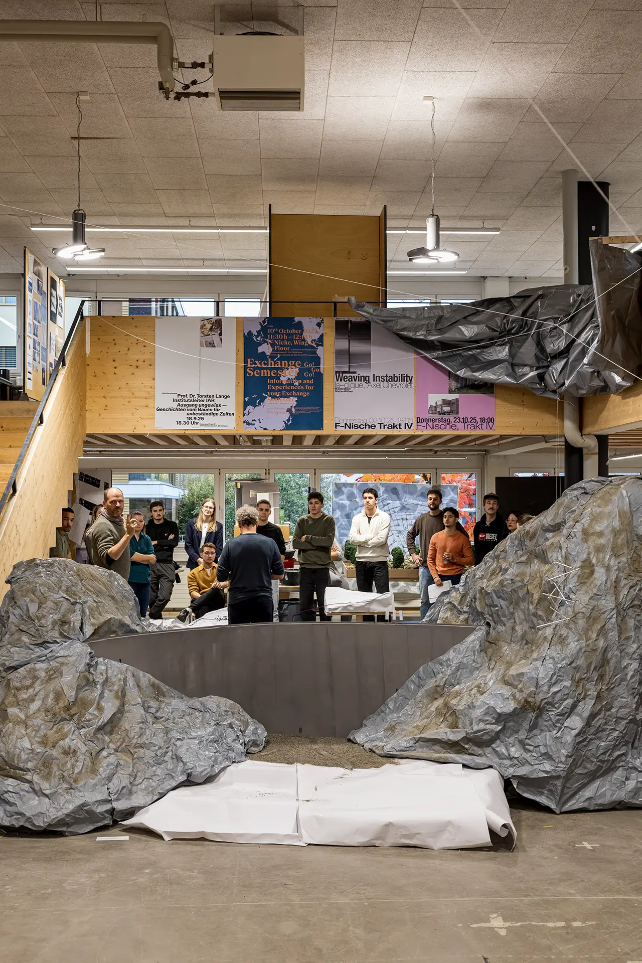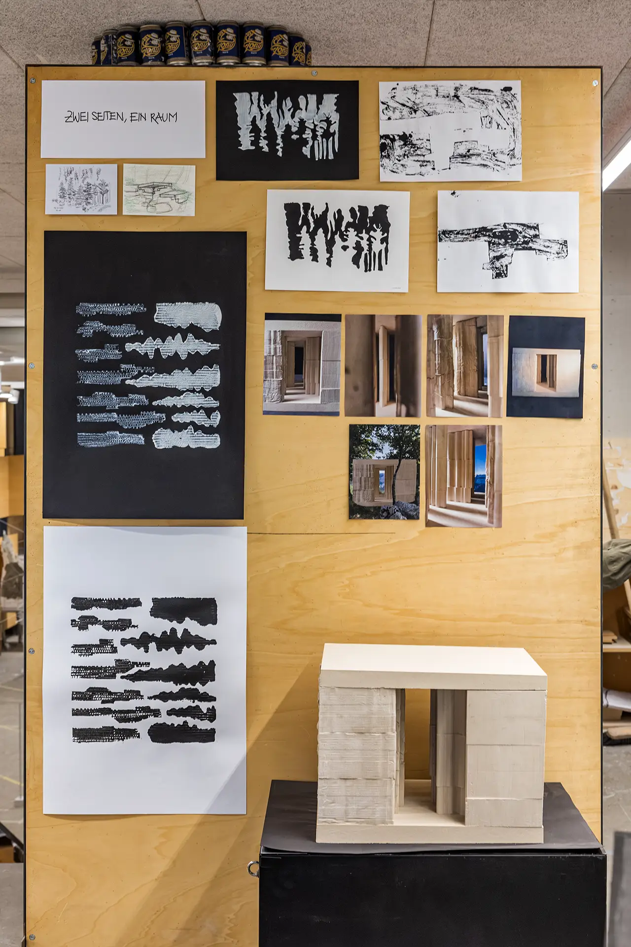 Das Projektmodul «Raum» im Bachelor Basic steht im Herbstsemester 2025 unter dem Titel «Raum der Kräfte». Die Studierenden entwickeln Entwürfe an drei unterschiedlichen, bemerkenswerten Orten in den Alpen. Raum wird dabei nicht als Form verstanden, sondern als Erfahrung: Licht, Übergang, Atmosphäre. Architektur soll Resonanz erzeugen, nicht dominieren. Die Alpen fordern Massstabs- und Perspektivwechsel – vom Landschaftsraum zum Innenraum, vom Fragment zum Ganzen.