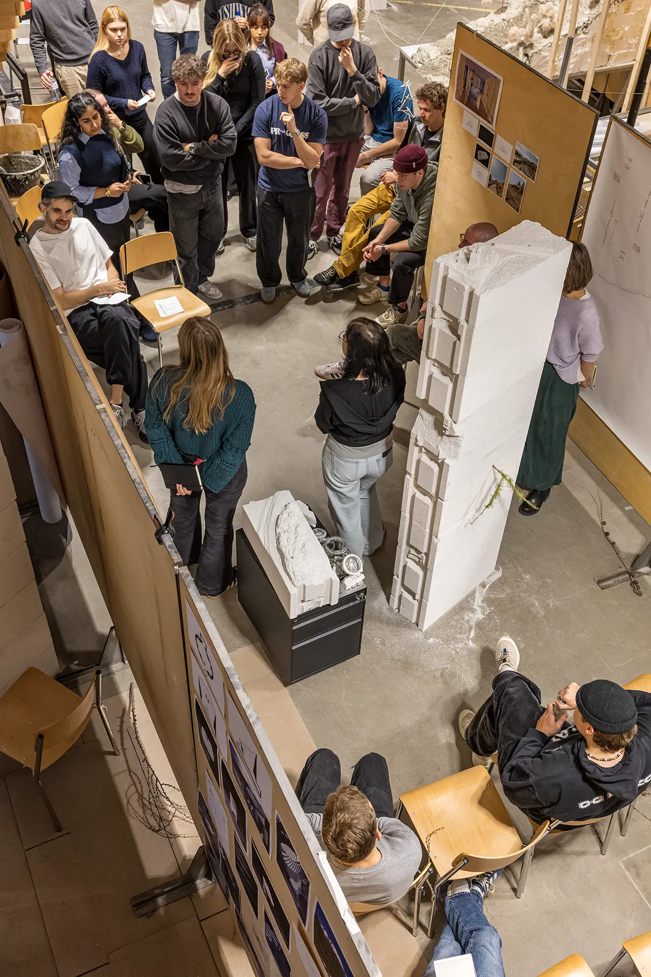 Zum Einstieg ins Studium widmen sich die Studierenden dem Raum der Kräfte – kreativ, produktiv, wandelnd, bedrohlich, zerstörerisch. Die Gruppen arbeiten an einer kollektive Synthese ihrer Erkenntnisse durch Modelle, Zeichnungen und Bilder.