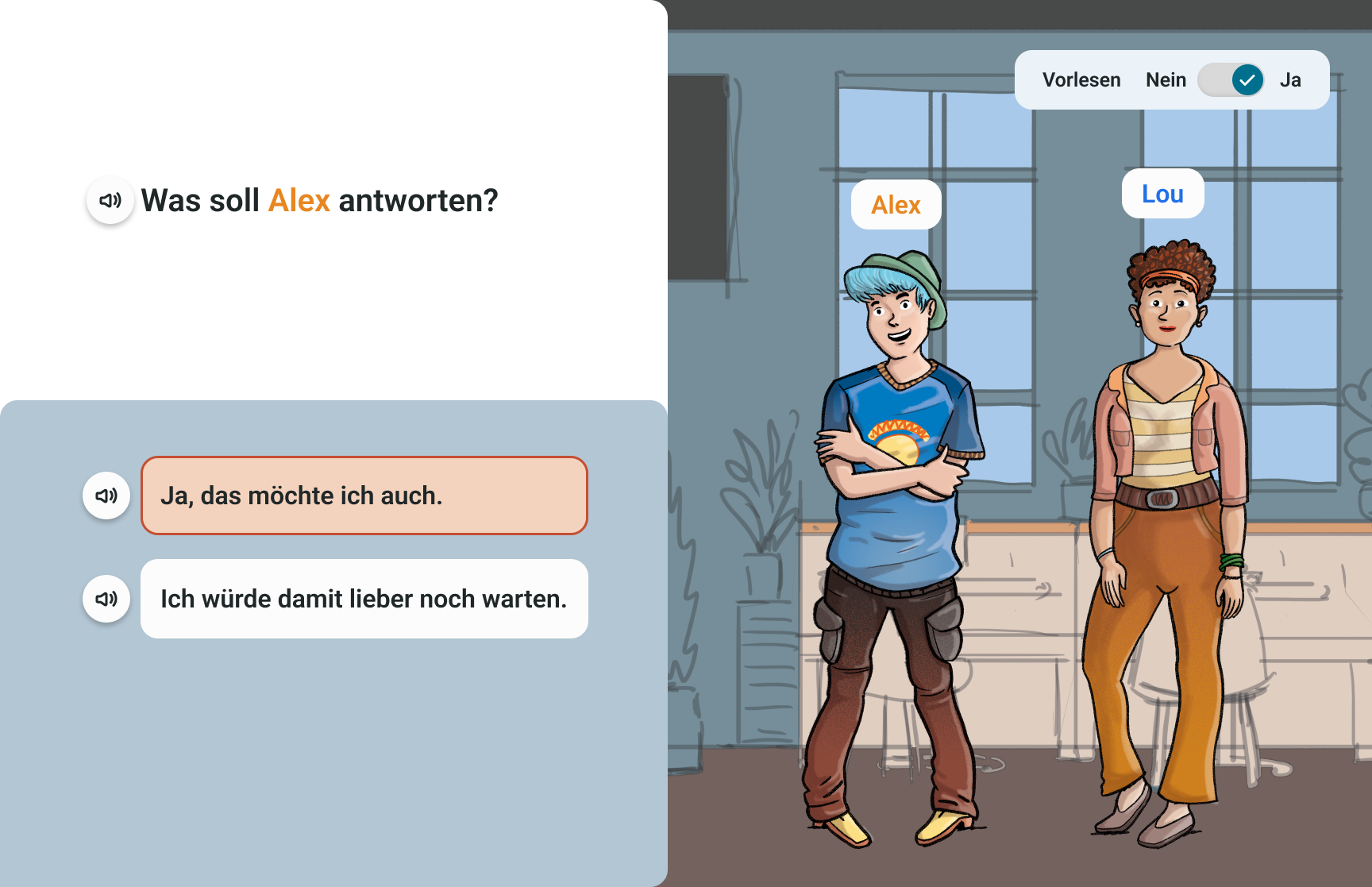 Beim entwickelten Spiel handelt es sich um ein narratives Serious Game. „Narrativ“ steht für die Geschichte, die dem Spiel zugrunde liegt. Die Spielenden treffen aus der Perspektive von Alex Entscheidungen, die den Verlauf des Spiels bestimmen. Welches Geschlecht Alex und Lou im Spiel haben, das entscheiden die Spielenden. Alex und Lou können männlich, weiblich oder divers sein.