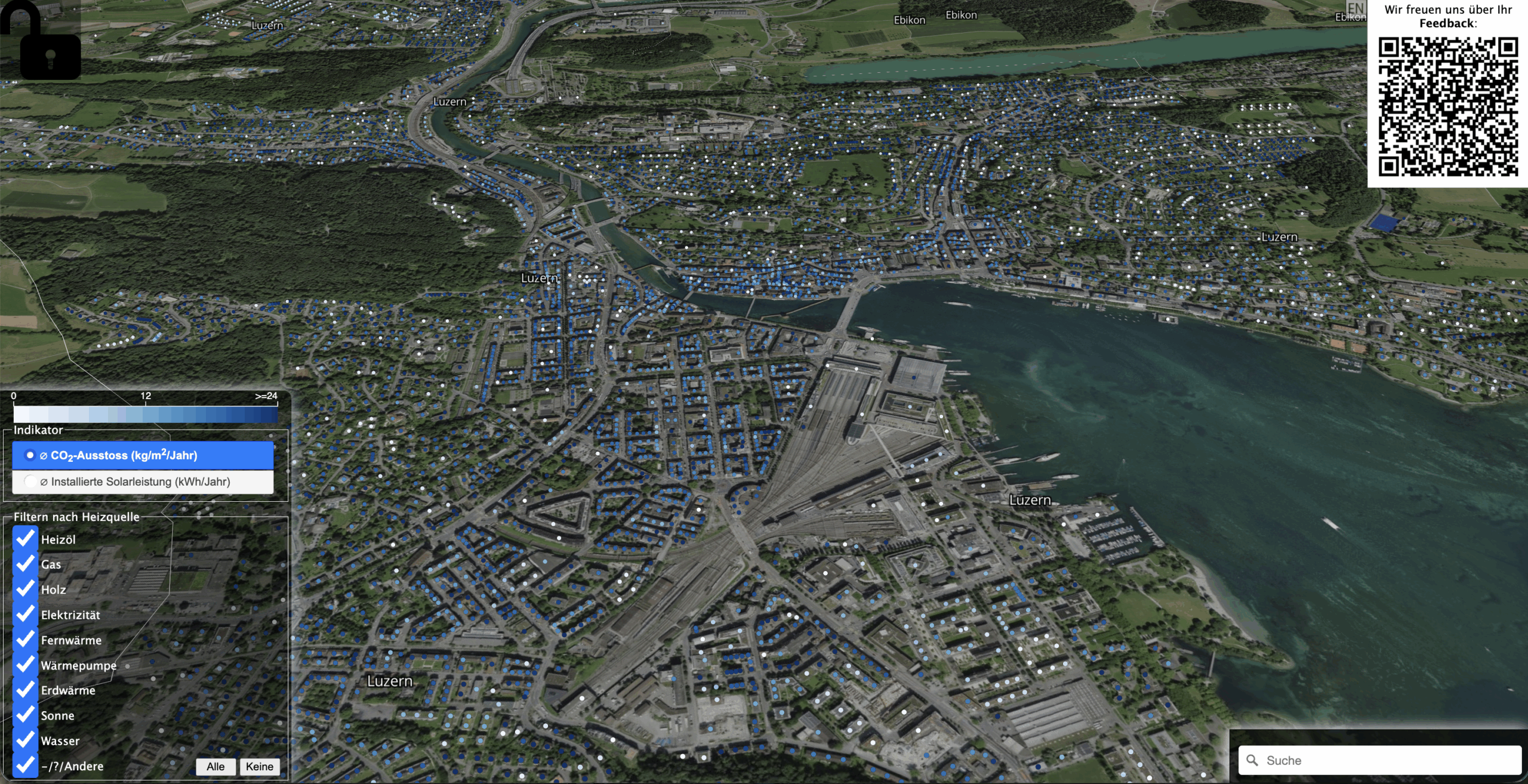 Derzeit werden die Daten aufbereitet, visualisiert und für die gesamte Schweiz skalierbar gemacht. Geplant ist ein bürgernahes Informations- und Entscheidungsmedium. Zur Detailplanung finden aktuell Design-Thinking-Workshops mit Hausbesitzer:innen, Gemeinde- und Quartiervertretenden sowie der Stadt Luzern statt. In einem agilen Verfahren wird das Tool bis Herbst entwickelt.
